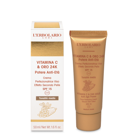 L’erbolario Crema Perfezionatrice Viso tonalità media Vitamina C & Oro 24K 50 mL